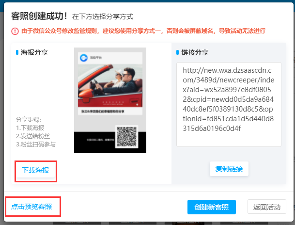 请客户创建一个新的活动使用“美片”,用了新版建议就不要用旧版了哦